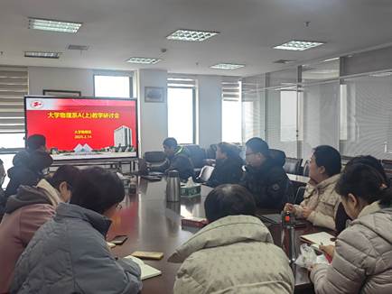 2025年2月14日大学物理系全体教师召开大学物理A(上)课程教学研讨会,会议由秦立国主任主持,围绕教学知识点、AI辅助教学及课程考核等议题展开深入探讨。