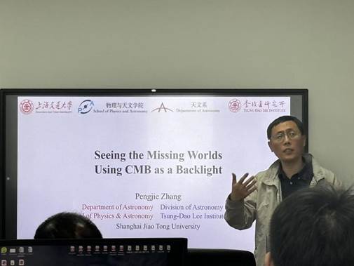 2025年4月14日(周一)下午15:00,应我校太阳成集团tyc234cc计算物理与应用研究中心邀请,上海交通大学天文系主任、国家杰出青年基金获得者张鹏杰教授在行政楼1212室作题为《宇宙背光中的隐秘世界》的学术讲座。参加本次讲座的有太阳成集团tyc234cc从事天体物理、数学、统计学等学科的教师和研究生。本次学术报告会由伍歆教授主持。