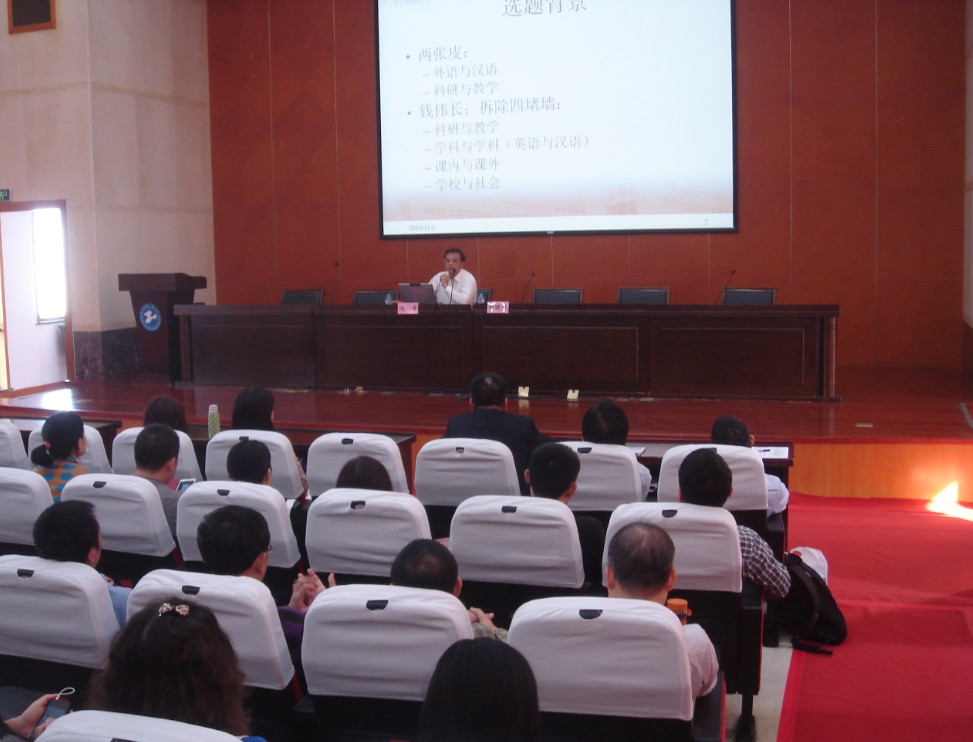 为了提高我校外语教师的学术素养和拓宽科研视野,11月1日下午2点在行政楼B301会场,基础教学学院邀请上海大学外国语学院副院长冯奇教授做题为“理论语言学及其运用”的讲座,全体外语教师参加了讲座,讲座由基础教学学院副院长刘晓民主持。讲座前基础教学学院院长张子厚、总支书记王勤等领导亲切会见了冯教授。此次讲座得到科研处的大力支持和具体指导。