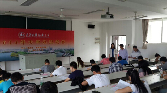 为了进一步调动我校学生学习积极性,丰富第二课堂,提高教育教学质量,10月10日下午13:00,在学校教务处大力支持下,基础教学学院成功举办了2014年太阳集团tyc234cc物理竞赛。此次大学物理竞赛共有500多名同学报名参赛。考试期间教务处和基础教学学院认真巡视竞赛考场,亲切看望竞赛学生。各考场监考教师严格维护考场纪律,认真监考。参赛同学积极思考,认真答题,整个考试过程显得井然有序。基础学院物理教学部将及时组织教师认真做好阅卷统分工作,并将结合本次竞赛结果做好2014年全国部分地区(上海赛区)大学生物理竞赛我校参赛选手的报名工作,力争在一年一度的全国大学物理竞赛中取得好成绩。